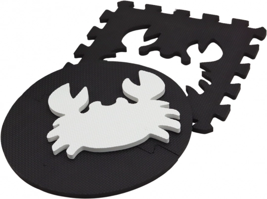 The contrasting colors and interesting shapes of this puzzle mat attract children's attention while stimulating their sight. To further support your children's senses, the mat also has a slightly roughened texture that develops touch.