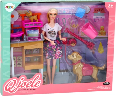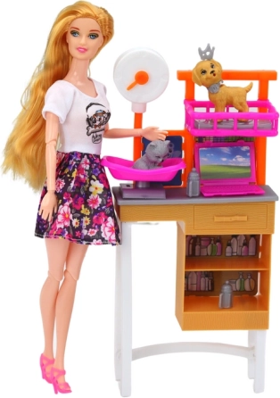 Discover creative play with a set where a doll cares for puppies and a kitten in a small salon/vet clinic. Includes animals, a care table, feeding and cleaning accessories, and a pushcart/dog on a leash. Kids practice empathy, responsibility, and imagination while caring for pets every day.