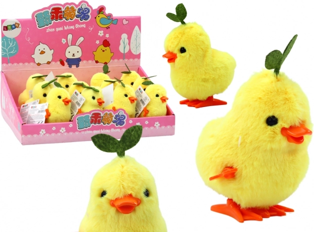 The head with decorative green leaves gives the chick extra charm, making it look like a fairy-tale bird among flowers. Once wound up, it starts hopping, providing hours of fun and laughter. This toy is an ideal companion for play and imagination development in children.