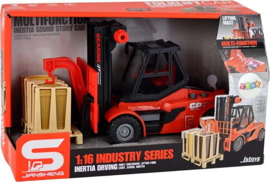Red Forklift 1:16 with Moving Forks, Sounds, and Lights