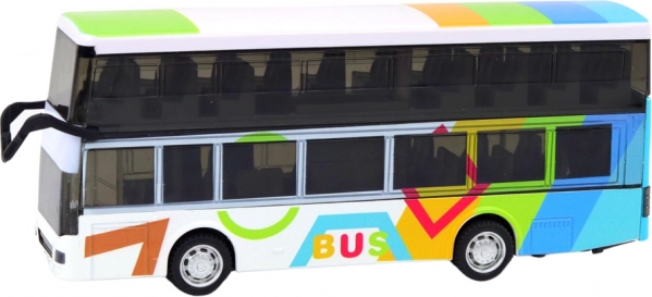 A fun and durable toy for little fans of urban transport: a double-decker metal bus with a friction (inertia) drive, light and sound effects, and opening doors and luggage compartment. The metal construction ensures long-lasting use, while realistic details inspire creative play.