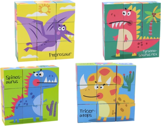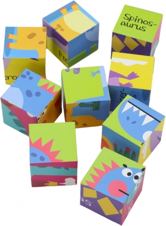 Colorful educational cubes with dinosaur motifs offer up to 6 different pictures in 1 set. From 9 sturdy cubes, kids can assemble T-REX, PTEROSAURUS, TRICERATOPS, STEGOSAURUS, DIPLODOCUS, and SPINOSAURUS. The game supports fine motor skills, hand–eye coordination, and logical thinking. Suitable from 3 years, made of durable cardboard, with CE and EN71.