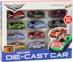 The set includes ten cars in various colors and designs that add a new dimension to your racing game.