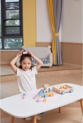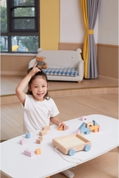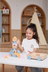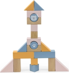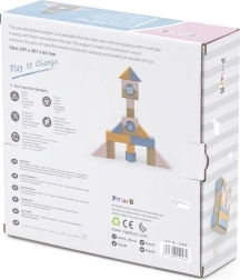 20 blocks in various pastel colors and shapes encourage creative building and the development of manual skills.