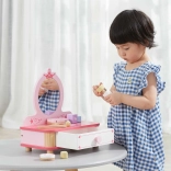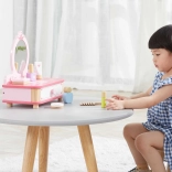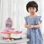 The beautiful pink vanity from brand Viga is the perfect addition to any child's room. The set includes a mirror, sliding drawer, and various wooden accessories to create a magical world full of imagination. Made from quality wood and painted with non-toxic colors safe for children.
