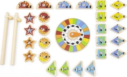 The set includes 2 magnetic rods, 26 colorful fish, and a spinner that determines the color or shape of the catch. Perfect for solo play or a two-player competition.