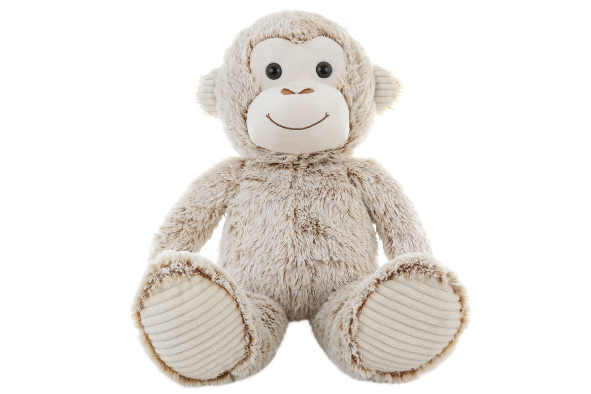 This large plush monkey in a beige shade will become a favorite companion in the crib and on the go. It has soft, fluffy fur, delicately embroidered facial details, and pleasant corduroy accents on the paws and ears. Thanks to the lightweight filling, it’s great for hugging and easy for smaller children to carry.