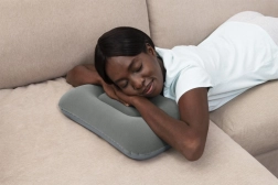 This handy pillow by Bestway is the ideal partner for all your trips and outdoor activities. Inflatable technology ensures that you can quickly prepare the pillow for use while it takes up minimal space when folded. Thanks to the pleasant flocked surface, your rest is even more comfortable.