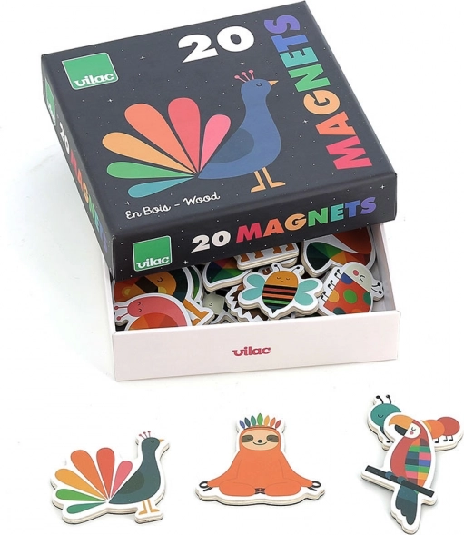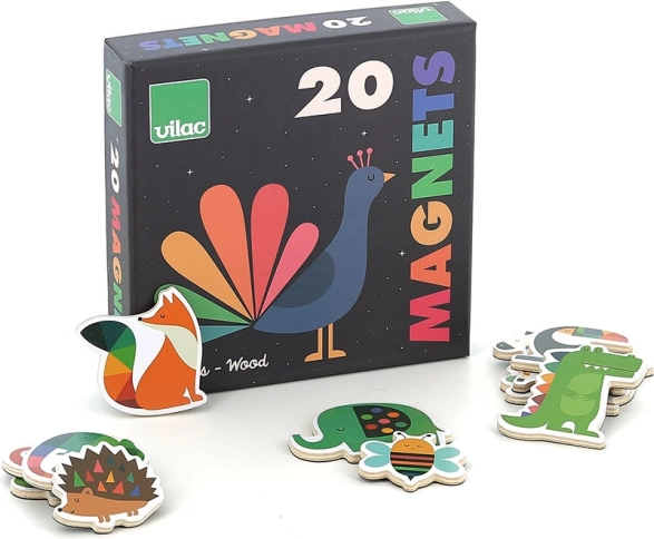 A set of cheerful magnets featuring rainbow animals (elephant, fox, toucan, and more) brings color and joy to a child’s room. Thanks to the high-quality wooden design, they are perfect for everyday play and as decoration on the fridge or a magnetic board.
