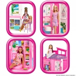 Discover four play areas - a kitchen, bathroom, upstairs bedroom, and cozy movie corner. This colorful foldable Barbie dollhouse is an ideal gift for children aged 3 and up. It includes: