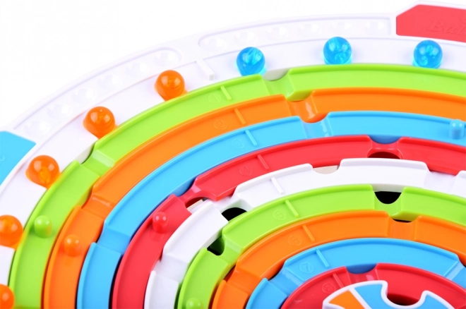 The entire game lasts about 20 minutes and includes components such as colorful marbles and a sturdy base with a diameter of 37 cm. All of this creates an attractive and interactive challenge for young players.