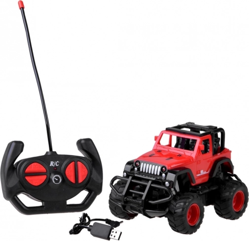 Experience unforgettable moments with our racing off-road car, perfectly adapted for off-road driving thanks to rubber tires with a wide tread. The car has illuminated lights for better visibility and a steering wheel-shaped remote control that gives you full control over the vehicle. Little racers can enjoy hours of fun on various tracks they create themselves.
