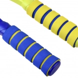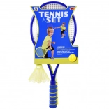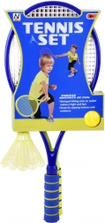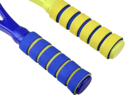 This versatile badminton and tennis set is designed for safe and fun play. The racket frame is made of durable plastic and the stringing of soft, flexible plastic that absorbs impacts well. Foam handles increase comfort and grip confidence even during longer sessions.
