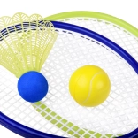 The set is ideal for children and recreational players—it promotes movement, improves coordination and reflexes, and brings plenty of fun outdoors and indoors. Thanks to the foam ball and plastic shuttlecock, play is gentle on the surroundings and suitable for various environments.