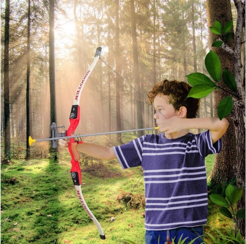 This children’s archery set is a great choice for little fans of hunter games and archery. The lightweight plastic bow and suction-cup arrows provide safe fun while practicing aim on a colorful target. The set is suitable for solo play or friendly competitions.