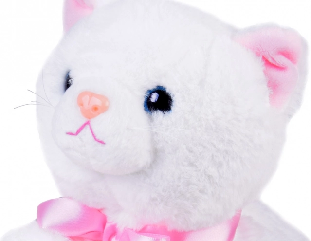 Its super-soft white fur with a pink bow, a cute pink nose, and expressive eyes invite a warm hug.