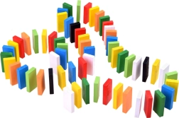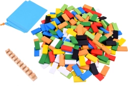 The Jokomisiada domino set brings 300 carefully crafted wooden pieces in vibrant colors, ideal for creative building, chain reactions, and free play. Children can design simple or complex tracks, experiment with shapes and heights, and thus develop imagination and logical thinking.