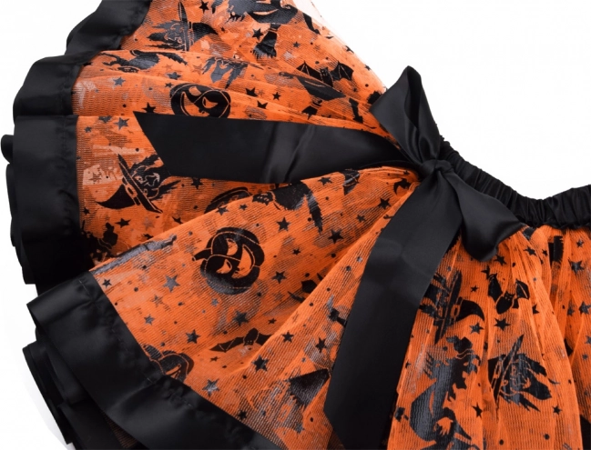 • Orange tutu skirt with a black satin trim and Halloween-themed prints.