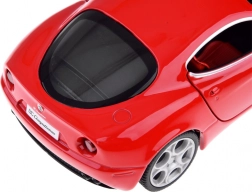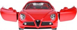 This Alfa Romeo 8C Competizione model car is crafted with attention to detail. It features opening doors, providing an authentic car experience. Other features include a loud engine and light effects such as front and rear lights and illuminated dashboard. The body is metal, the wheels are rubber, and the chassis is plastic. The car is powered by a friction power system, allowing realistic forward movement when pressed and released on a smooth surface.