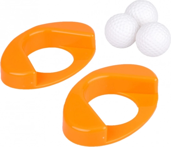 Three lightweight plastic clubs, three balls, and two holes with bases provide everything needed for mini golf at home or outdoors.