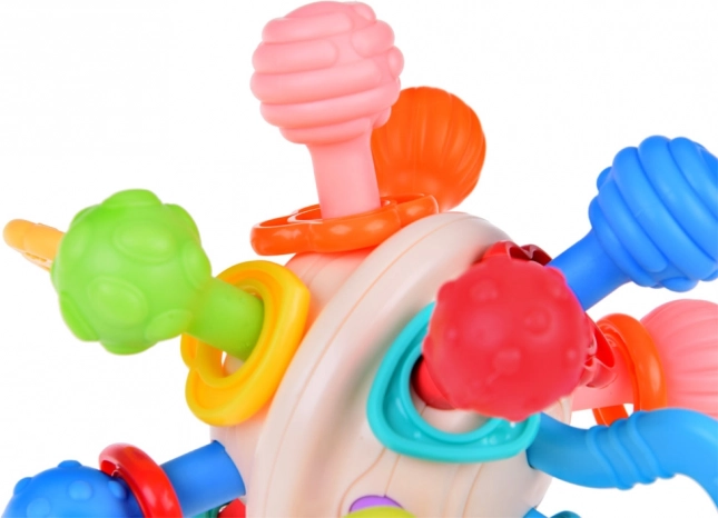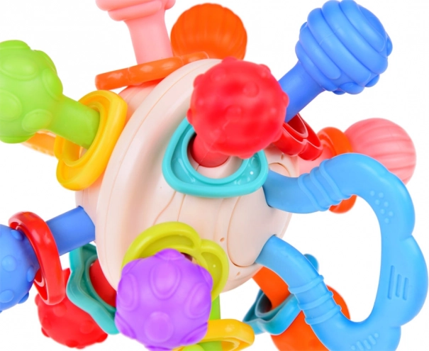 Thanks to diverse textures and protrusions, the teether stimulates the child's senses, encouraging exploration and understanding of tactile impressions.