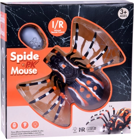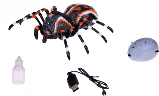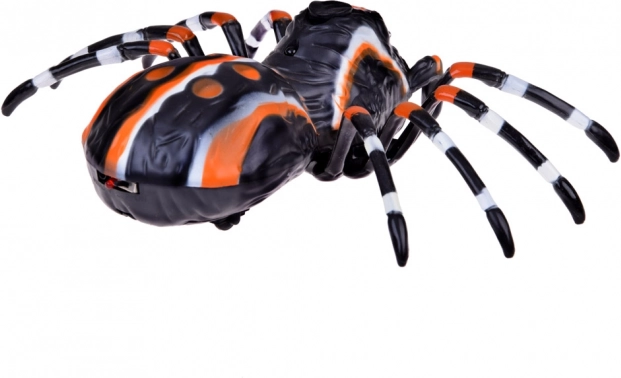 This remote-controlled spider is a master of disguise: a faithful body shape, contrasting black–orange–white coloring, and movable legs create an impressively realistic effect. While driving, the spider glows with red eyes and plays sound effects, taking evening fun and Halloween decor to the next level.
