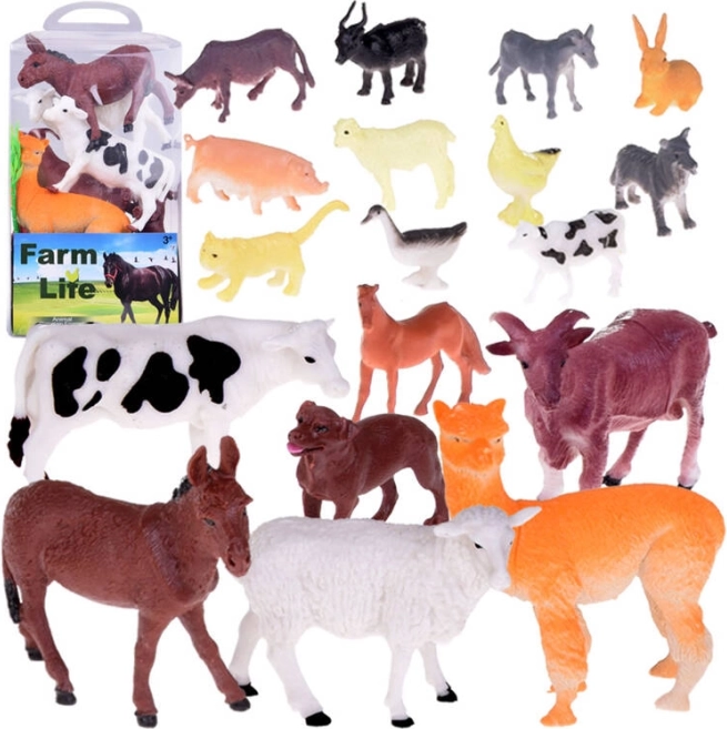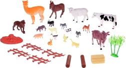 Discover country life with a colorful set of farm animals and accessories. Kids can create their own stories, learn to recognize animals, and spark their imagination. The set includes figures such as a cow, horse, dog, donkey, sheep, lamb, goats, alpaca, pig, buffalo, cat, rabbit, duck, and hen, plus a fence and a hay bale. A great choice for creative play, learning through play, and family fun.