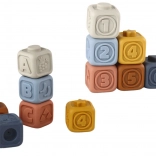 The set also includes 6 soft blocks, offering many educational functions. Each block displays numbers, letters, images of fruits, animals, and shapes, helping the child get acquainted with basic concepts in a playful manner while also promoting creativity.