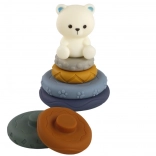 The centerpiece of the set is the colorful pyramid with a white bear on top, which encourages the child to learn eye-hand coordination, movement precision and logical thinking through stacking rings of different sizes and structures.