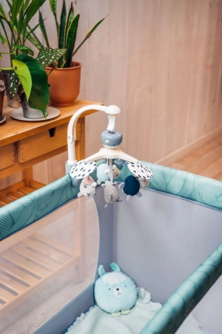 MoMi KIKI is a practical musical mobile that grows with your baby—at home and on the go. Thanks to the universal mounting, you can quickly attach it to a wooden crib, selected travel cribs, a stroller, or a car seat. Muted colors don’t overstimulate, and gentle melodies with white noise support peaceful sleep.