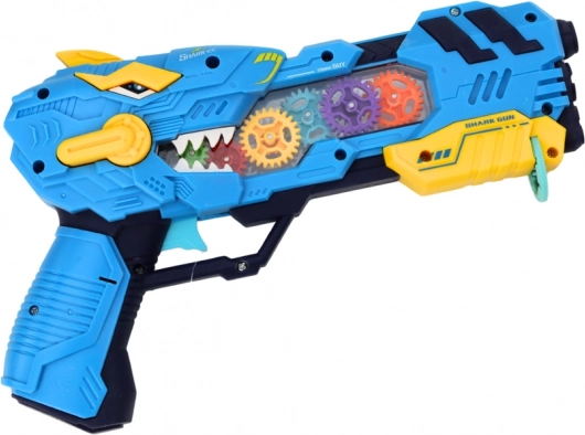 Discover action-packed fun with this dinosaur-shaped gun that combines dinosaur projections, lighting effects, and sound effects. Each trigger pull launches a light show with rotating backlit gears and realistic sounds.