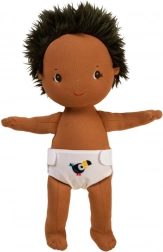 The doll supports the development of fine motor skills, empathy, and communication. Children can change Sasha’s diapers, dress her, and create their own stories. The outer material is 100% polyester, and the filling is 100% recycled polyester with GRS certification. Machine washable at 30 °C on a gentle cycle (in a laundry bag or pillowcase).