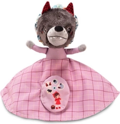Fall in love with the puppet that combines three characters into one toy - Little Red Riding Hood, Grandma, and the Wolf. Just rotate the puppet and different characters from the popular fairy tale appear. The puppet is made from soft materials, making it suitable for manipulation play and providing safe play thanks to its gentle surface finish.