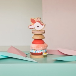 Stella the deer invites little builders into a world of discovery. This stacking pyramid made from quality wood and soft fabric elements supports hand–eye coordination, patience, and dexterity. The pieces can be stacked in any order—there is no right or wrong way—so every build looks a little different and sparks creativity.