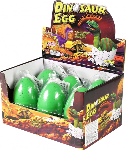 Place the egg in a container of water so it is fully submerged. The first cracks appear within 12–24 hours, and then the dinosaur starts to grow.