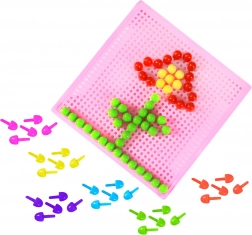 A creative peg mosaic that will delight all little makers. Children can arrange pictures from imagination and develop fine motor skills and patience. The set includes 210 pegs in 6 colors and a practical insertion board.