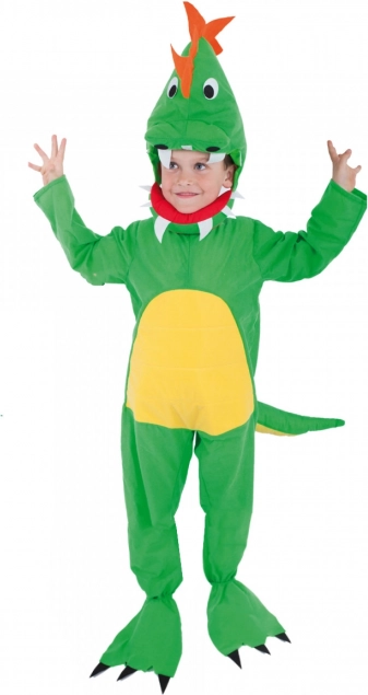 Turn your child into an adorable dinosaur in no time. This costume is designed for comfortable wear and easy dressing, making it a great choice for school carnivals, birthday parties, and costume balls. The jumpsuit with a tail adds flair to the look, while the removable head with an opening mouth brings lots of fun during play.