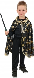 This black children's wizard cloak with gold prints of stars, moons, and other motifs instantly transforms any child into a little magician. It’s lightweight, comfortable to wear, and easy to put on thanks to the tie at the neck.