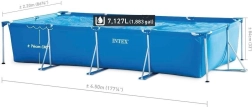 Enjoy summer to the fullest with the INTEX family pool that fits most gardens and offers comfortable space for swimming and play. The robust steel frame and triple-layer PVC liner with nylon reinforcement ensure long service life, resistance to tearing and weather, and great stability while swimming.
