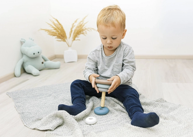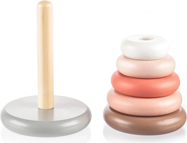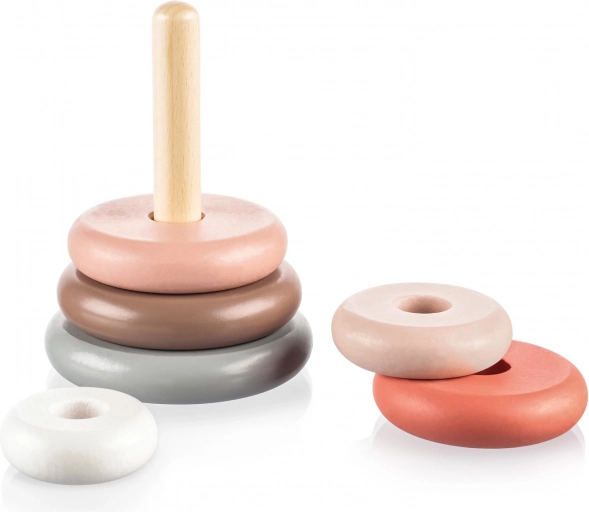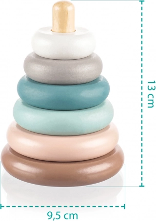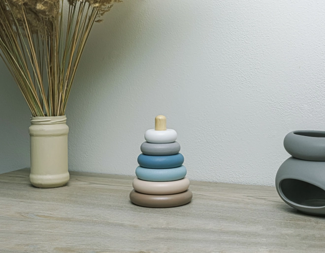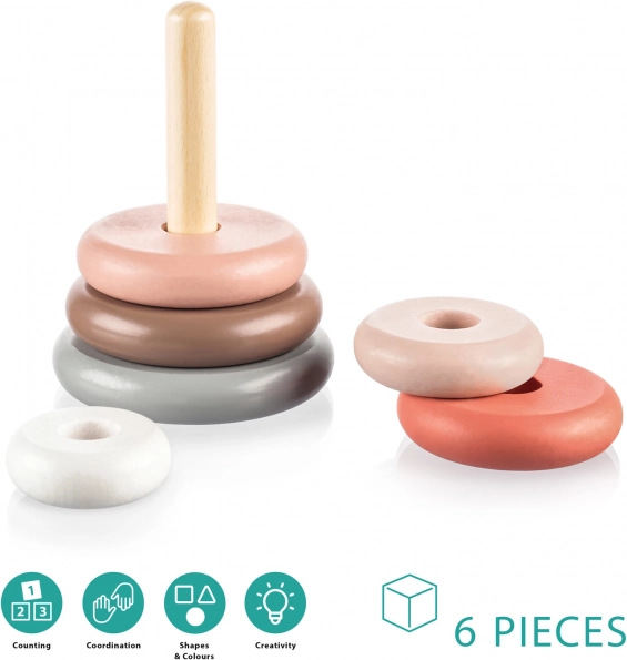 Stacking, unstacking, sorting, and dozens of different combinations – these are wooden stacking rings for curious little explorers. The set consists of 6 pieces of different sizes that can be stacked on top of each other in any order.