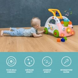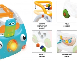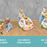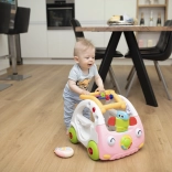 Discover a practical and playful solution for those first steps— a 3-in-1 activity walker in a cute car shape. Thanks to the adjustable handle, it provides stable support for standing and walking, while the quiet wheels with brake ensure safety during stationary play. From 6 months, it works as an interactive toy with lights and sounds and later reliably accompanies your child while learning to walk.