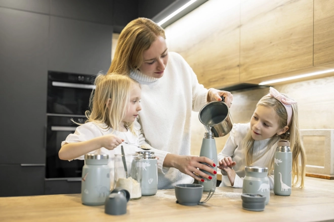 Silicone dining set for kids with owl motif, 8 pieces, beige