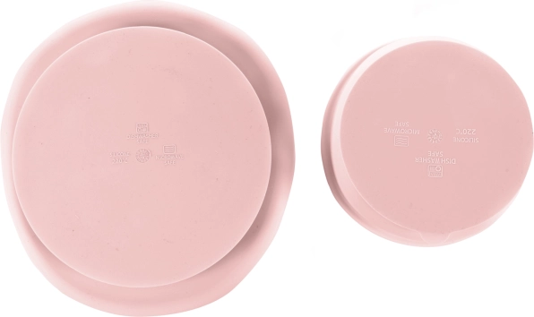 The tableware is made of safe, food-grade silicone that is non-toxic and shatter-resistant. For small children, silicone feels more natural than plastic or metal. Children often explore the world with their mouths, and when they play with and chew on the tableware, there is no risk of injury because it is made from a flexible, soft yet very durable material. A strong non-slip suction base keeps the bowl and divided plate in place on the table or on a highchair tray, preventing tipping or falls; even playful children will find it difficult to lift and throw this tableware.