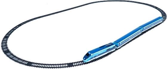 Locomotive, 2 carriages, 12× curved track, 8× straight track
