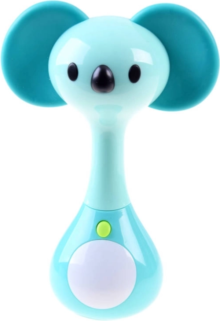 This adorable interactive koala-shaped rattle delights babies from the very first months. It offers 3 play modes with melodies and short sounds, and the tummy lights up and changes colors when moved. Thanks to the soft rubber parts, it also serves as a teether. The comfortable shape is ideal for small baby hands.