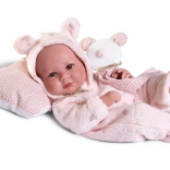 Discover the realistic LUCA doll measuring 42 cm with an all-vinyl body, finely crafted baby features, and a soft, pleasant-to-touch material. It can be bathed (take care with the eyelashes), comes in a gift box, and delights children from 3 years. The ANTONIO JUAN brand emphasizes ecology and uses organic cotton for selected outfits.