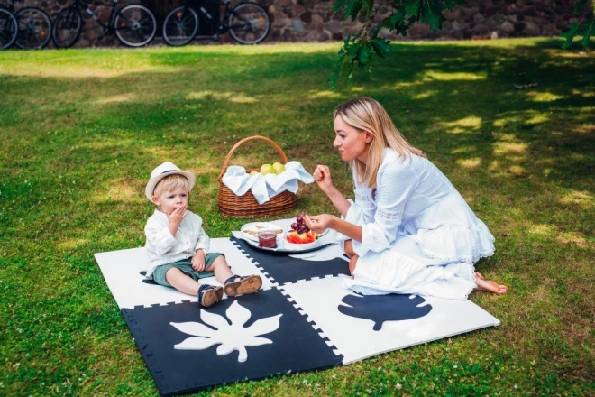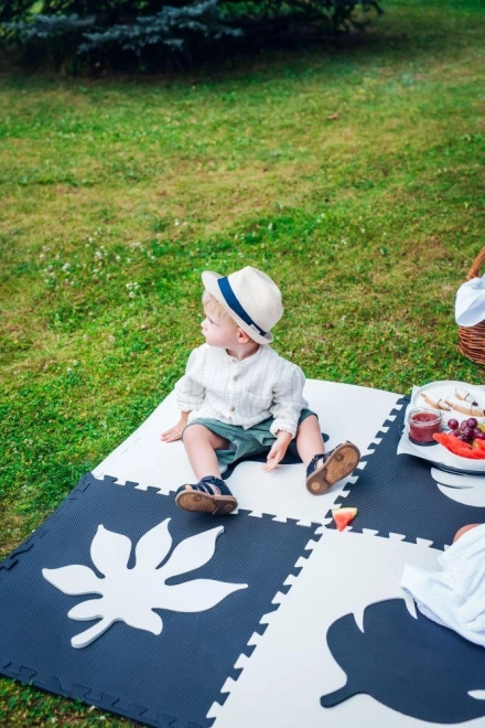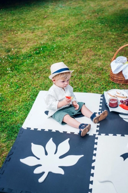 The MoMi FELI set includes 16 pieces – 4 puzzle tiles, 4 leaves, and 8 edge pieces. Each tile measures 60x60 cm.
