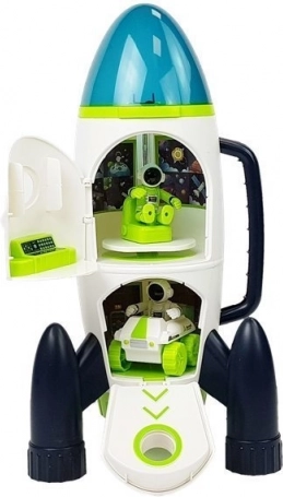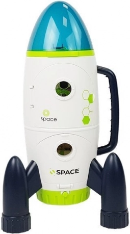 The rocket is equipped with colorful light and sound effects that simulate real cosmic takeoffs.