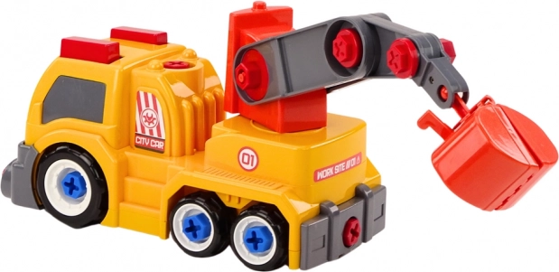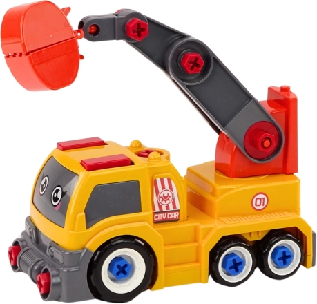 This colorful crane truck in orange will delight any child who loves construction machines. Thanks to the option for DIY disassembly and reassembly, kids discover how the vehicle works while developing patience and logical thinking. Movable parts like the crane arm and claw/bucket bring lots of realistic play scenarios.