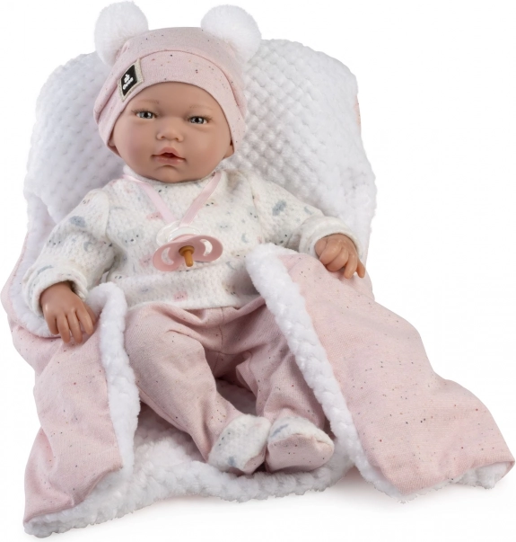 The doll comes with a pacifier that serves as a stylish accessory and is packed in a tasteful gift box, which makes it a wonderful gift for children from three years old. Its realistic design and quality craftsmanship ensure hours of fun.